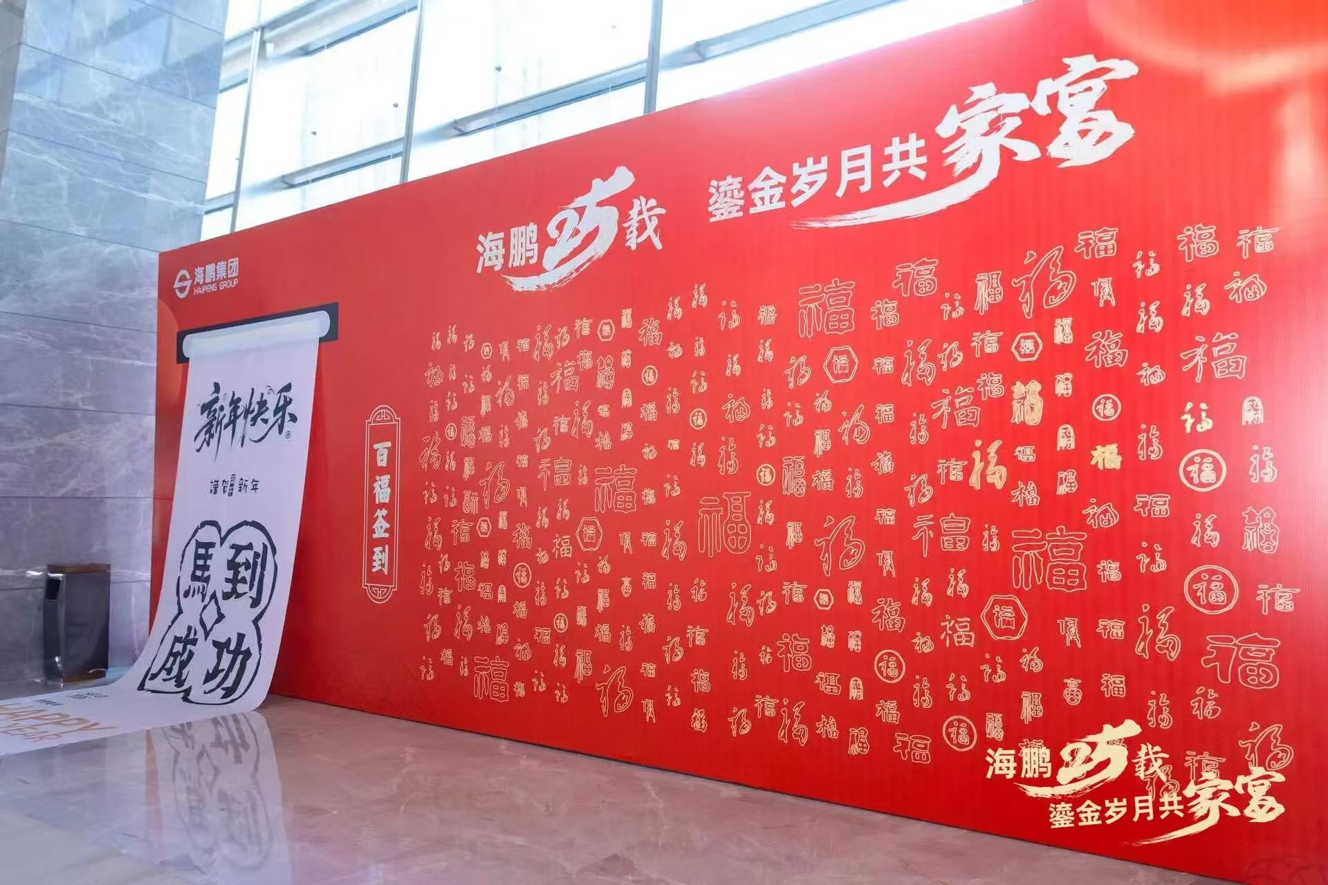 活动伊始,各位海鹏家人们陆续抵达,在鎏金主题的签到墙前,以独特的描“金福”开启这一夜的鎏金之旅。以墨传情,以福寄愿,每位来宾亲手印下金色“福”字,寓意“金福同享,好运共拓”。