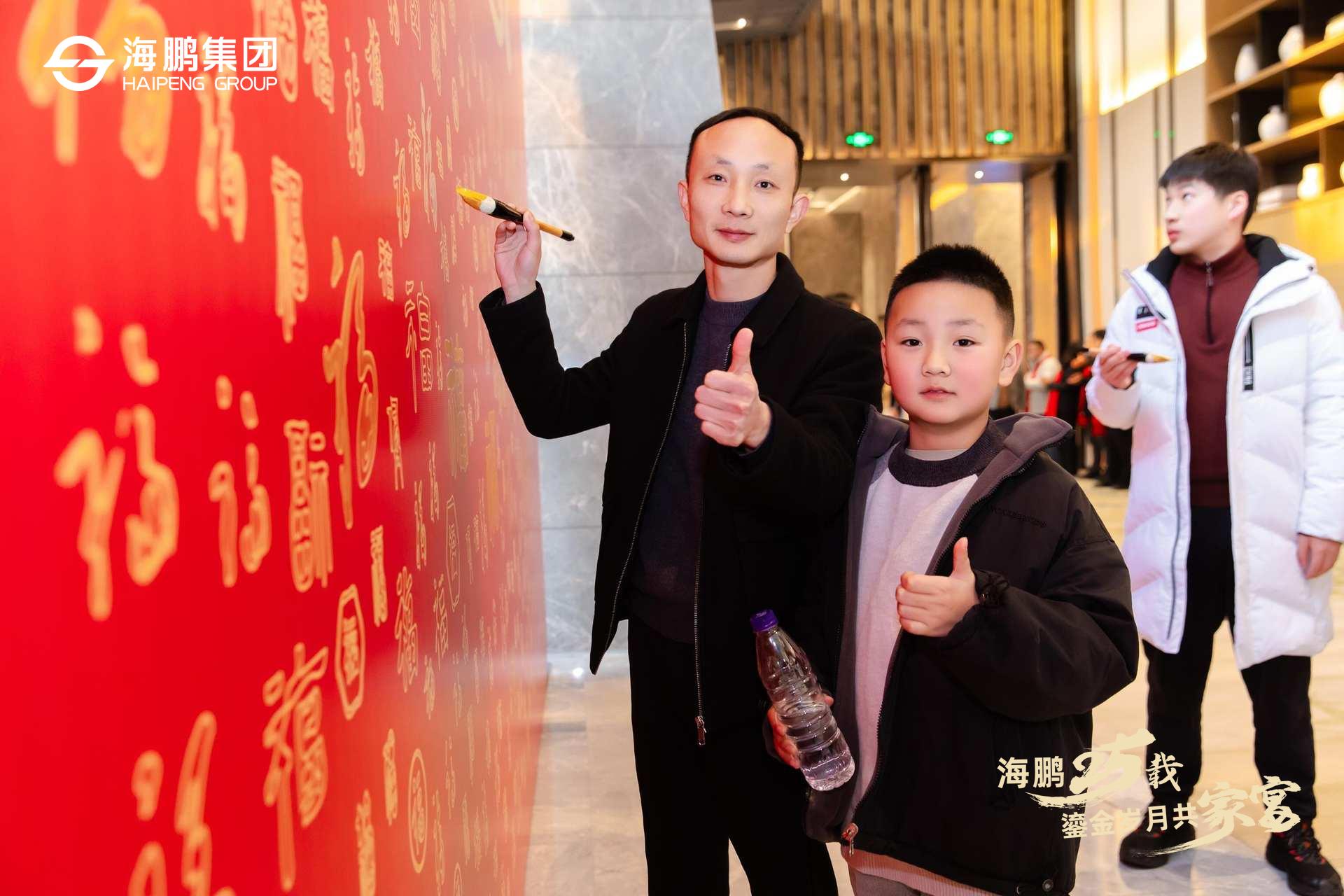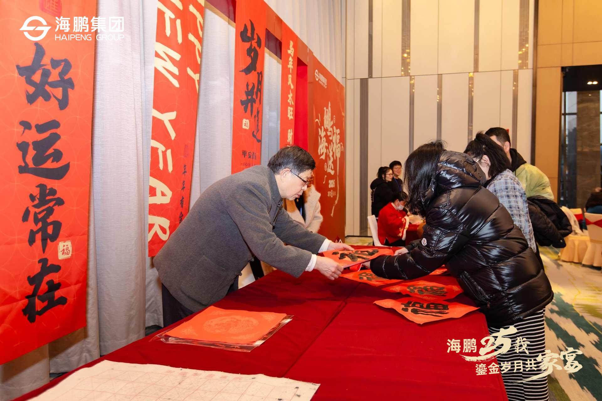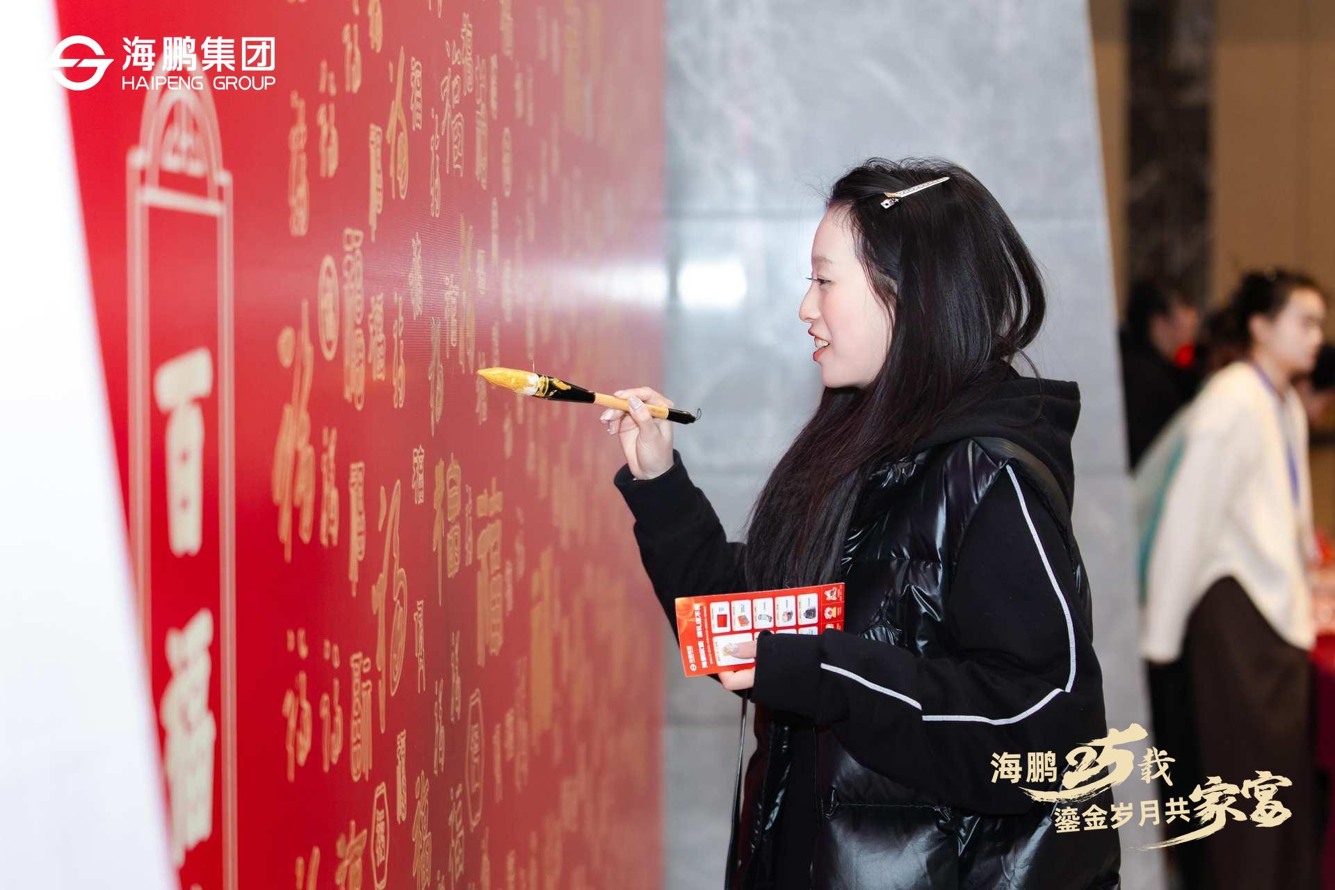 活动伊始,各位海鹏家人们陆续抵达,在鎏金主题的签到墙前,以独特的描“金福”开启这一夜的鎏金之旅。以墨传情,以福寄愿,每位来宾亲手印下金色“福”字,寓意“金福同享,好运共拓”。
